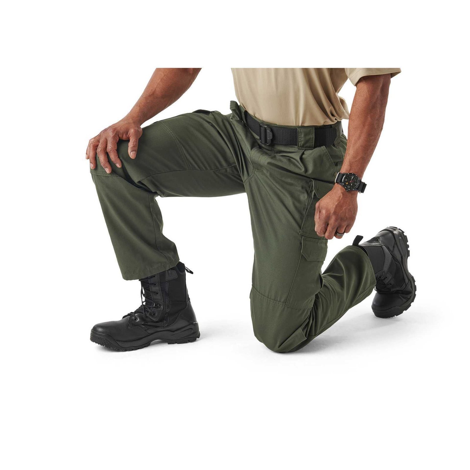 Панталон на американската фирма 5.11 Tactical, модел Taclite® Pro Ripstop Pant в зелен цвят. Изработен от 65% полиестер и 35% рипстоп памук Taclite®. Панталонът е обработен с тефлонова промазка, която предпазва от отблъскване на петна и мръсотия. Двойното подсилване на седалището и коленете осигурява максимална устойчивост на износване. Налице са две основни отделения за ръцете, два странични карго джоба с велкро, джоб за нож/пълнител, джоб за телефон с велкро, две големи отделения с велкро и лента за аксесоари. Ластичната лента на талията ви предоставя по-високо ниво на адаптивност във всяка ситуация, както и повече комфорт. Надежден, издръжлив и практичен панталон, подходящ за ежедневието, лов и по-динамични ситуации.