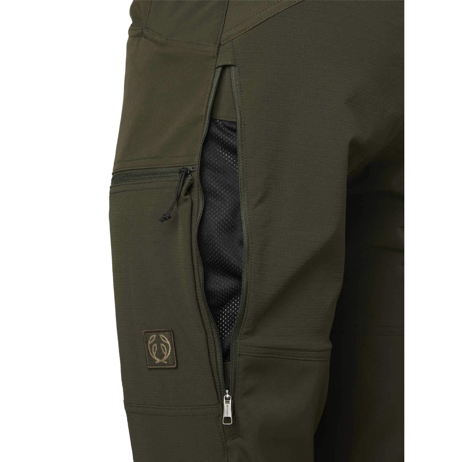 Когато топлината се натрупа, вентилационните отвори на бедрата могат да се отворят. Краищата на крачолите са еластични и индивидуално регулируеми с велкро закопчалка. Има и кукички за връзки на обувки, които предпазват панталоните от надигане. В многото различни джобове има достатъчно място за съхранение на по-малки предмети от ловното оборудване. Има два джоба за ръце и два джоба с цип на бедрата. Единият джоб на бедрата е с цип и отделно отделение за мобилен телефон.