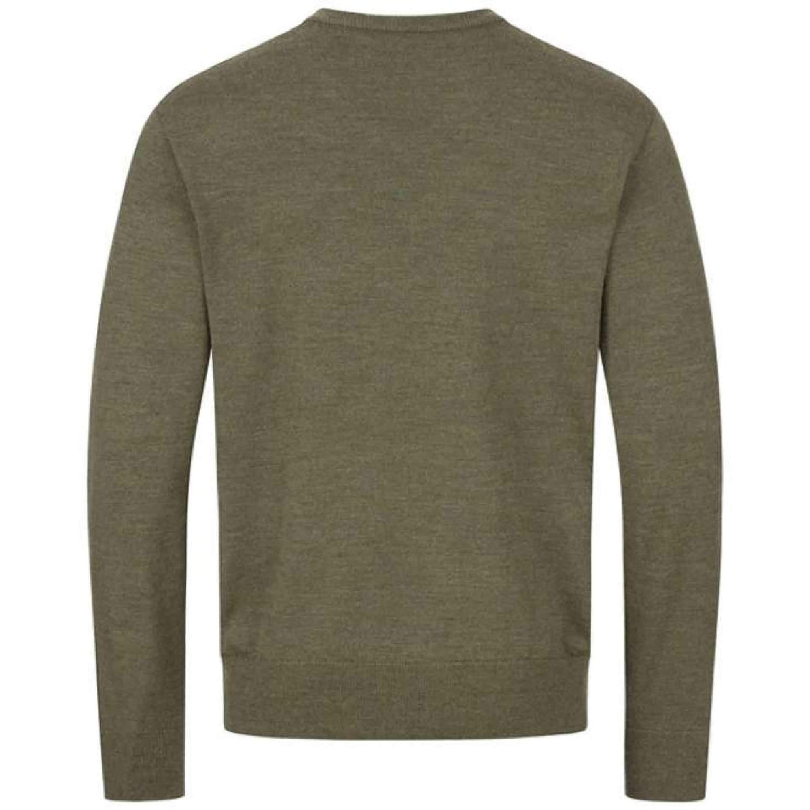 Пуловер на немската фирма Blaser, модел Merino V-Neck Dark Olive. Класически пуловер с V-образно деколте, изработен от 100% мериносова вълна, който осигурява фантастичен комфорт. Пуловерът използва регулиращите температурата, дишащите и отблъскващи миризмите свойства на мериносовата вълна, като същевременно осигурява меко и комфортно усещане за кожата. Това прави вълнения пуловер идеален за всеки повод, от официални събития до ежедневни дни и по-натоварващи физически дейности. Мъжкият пуловер съчетава функционалност и стил с перфектна кройка, с рипсени части на китките и яката.