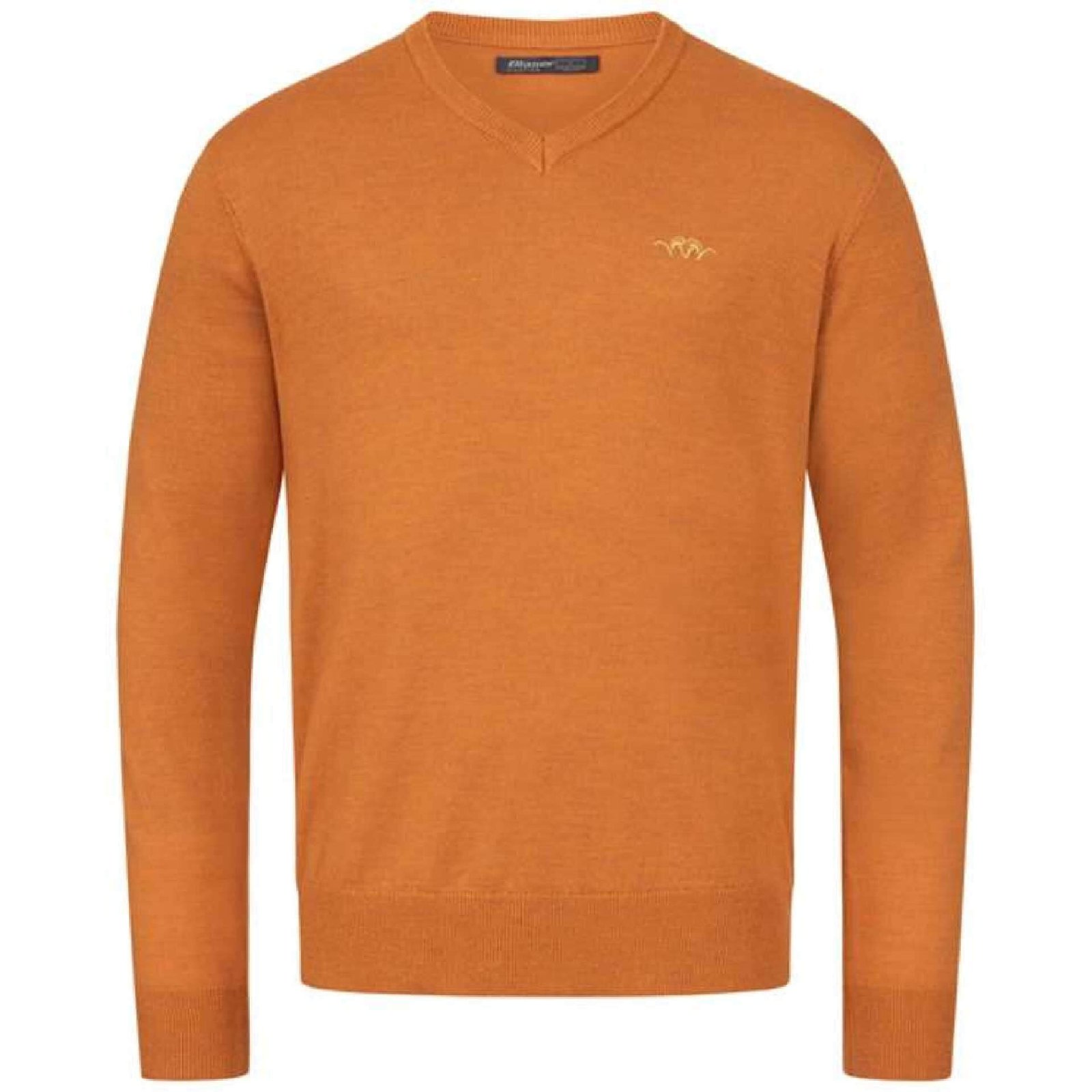 Пуловер на немската фирма Blaser, модел Merino V-Neck Rust. Класически пуловер с V-образно деколте, изработен от 100% мериносова вълна, който осигурява фантастичен комфорт. Пуловерът използва регулиращите температурата, дишащите и отблъскващи миризмите свойства на мериносовата вълна, като същевременно осигурява меко и комфортно усещане за кожата. Това прави вълнения пуловер идеален за всеки повод, от официални събития до ежедневни дни и по-натоварващи физически дейности. Мъжкият пуловер съчетава функционалност и стил с перфектна кройка, с рипсени части на китките и яката.